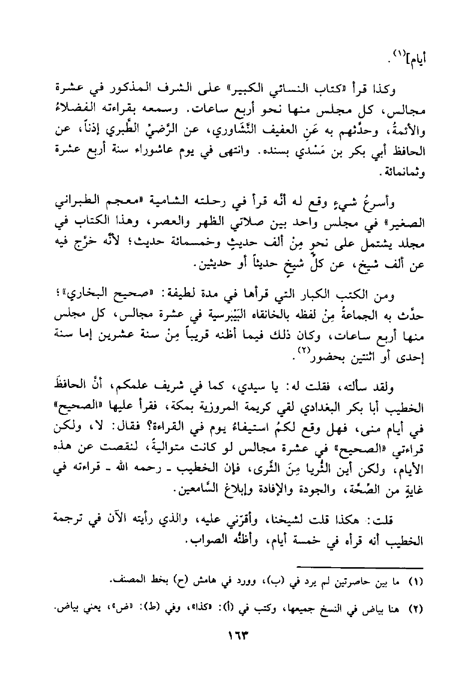 قلت: هكذا قلت لشيخنا، وأقرّني عليه، والذي رأيته الآن في ترجمة الخطيب أنه قرأه في خمسة أيام، وأظنُّه الصواب.