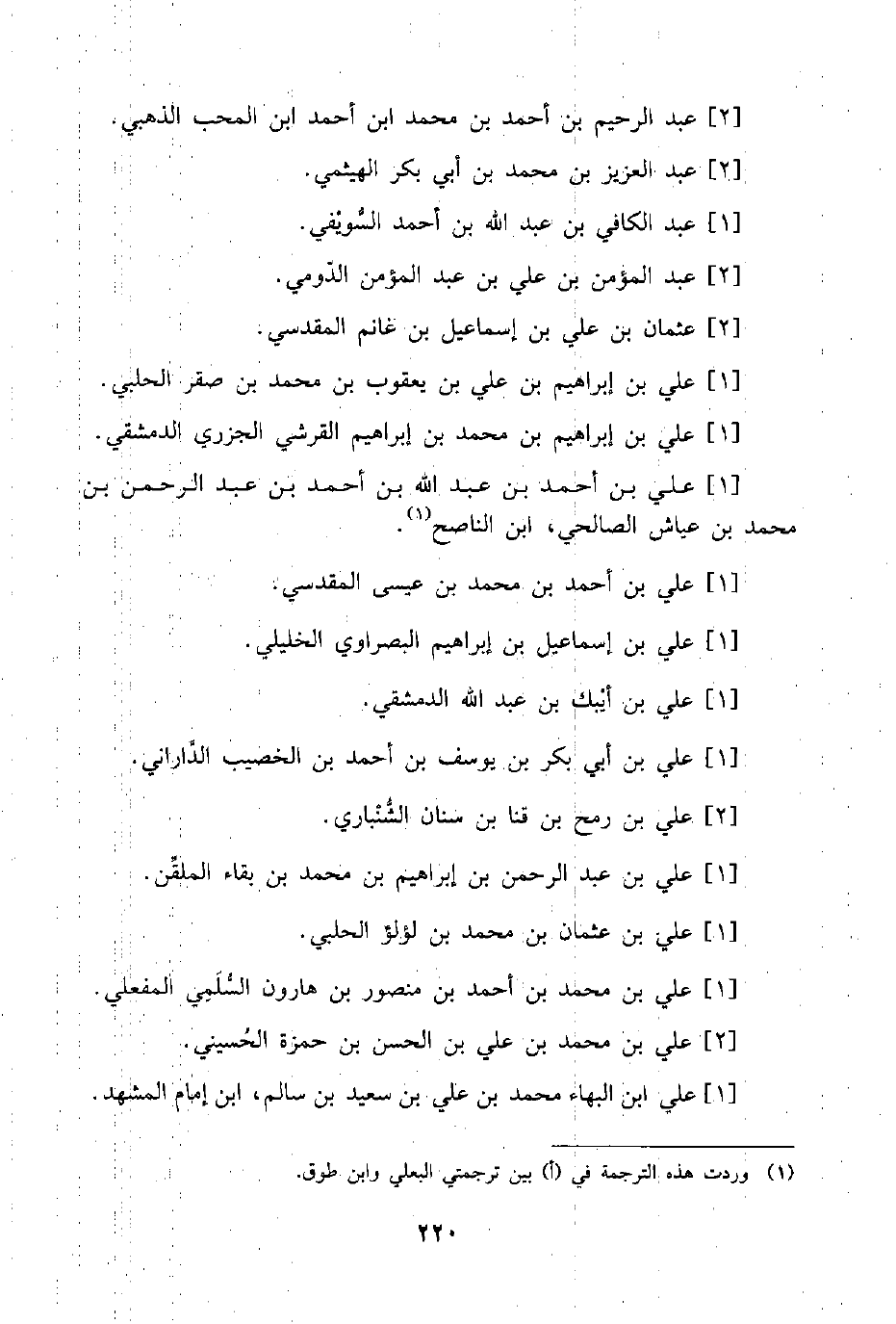 (¬1) وردت هذه الترجمة في (أ) ببن ترجمتي البعلي وابن طوق.