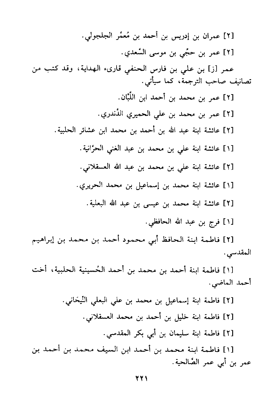 [2] عائشة ابنة عبد اللَّه بن أحمد بن محمد ابن عشائر الحلبية.