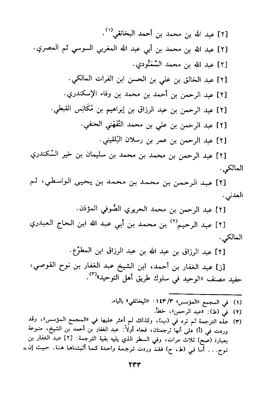 (¬3) هذه الترجمة لم ترد في "ب"، وكذلك لم أعثر عليها في "المجمع المؤسس"، وقد وردت في (أ) على أنها ترجمتان, فجاء أولًا: عبد الغفار بن أحمد بن الشيخ، متبوعة بعبارة (صح) ثلاث مرات وفي السطر الذي يليه بقية الترجمة: [2] عبد الغفار بن نوح. . . أما في (ط، ح) فقد وردت ترجمة واحدة كما أثبتناها هنا. حيث إن =