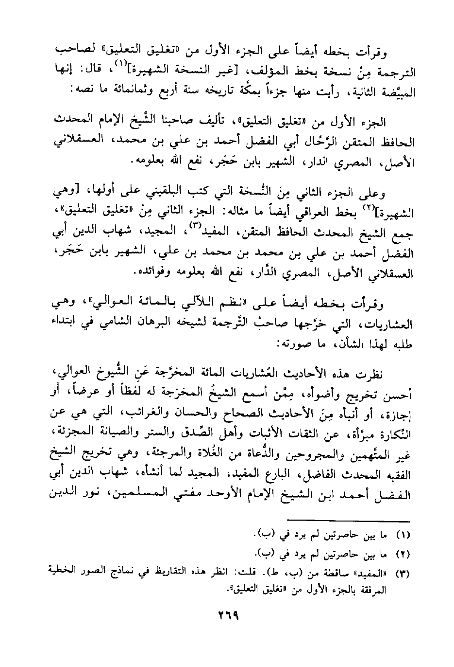 (¬3) "المفيد" ساقطة من (ب، ط). قلت: انظر هذه التقاريظ في نماذج الصور الخطية المرفقة بالجزء الأول من "تغليق التعليق".