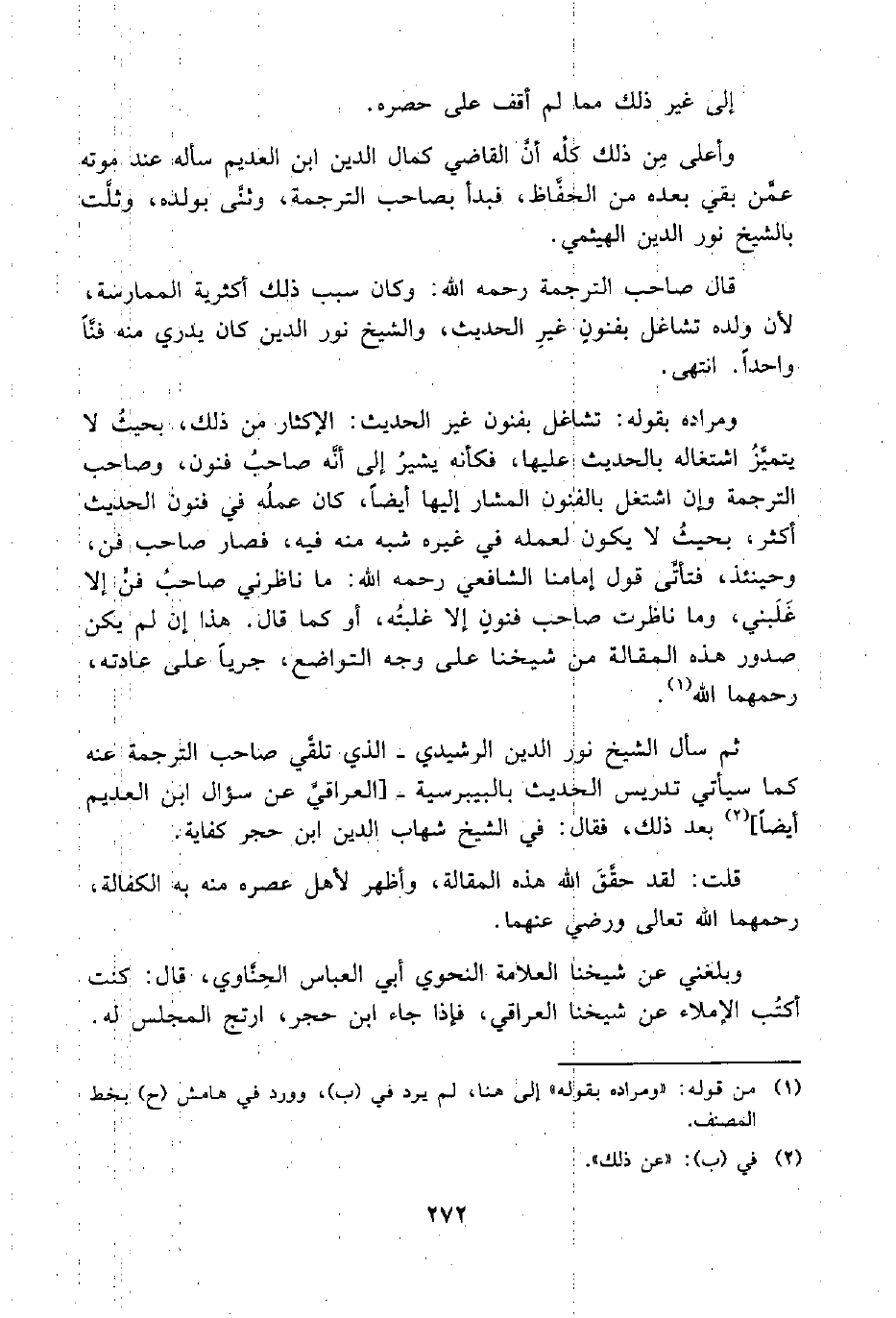 ومراده بقوله: تشاغل بفنون غير الحديث: الإكثار من ذلك، بحيثُ لا يتميَّزُ اشتغاله بالحديث عليها، فكأنه يشيرُ إلى أنَّه صاحبُ فنون، وصاحب الترجمة وإن اشتغل بالفنون المشار إليها أيضًا، كان عملُه في فنون الحديث أكثر، بحيثُ لا يكون لعمله في غيره شبه منه فيه، فصار صاحب فن، وحينئذ، فتأتَّى قول إماما الشافعي رحمه اللَّه: ما ناظرني صاحبُ فنٍّ إلا غَلَبني، وما ناظرت صاحب فنونٍ إلا غلبتُه، أو كما قال. هذا إن لم يكن صدور هذه المقالة من شيخنا على وجه التواضع، جريًا على عادته، رحمهما اللَّه (¬1).