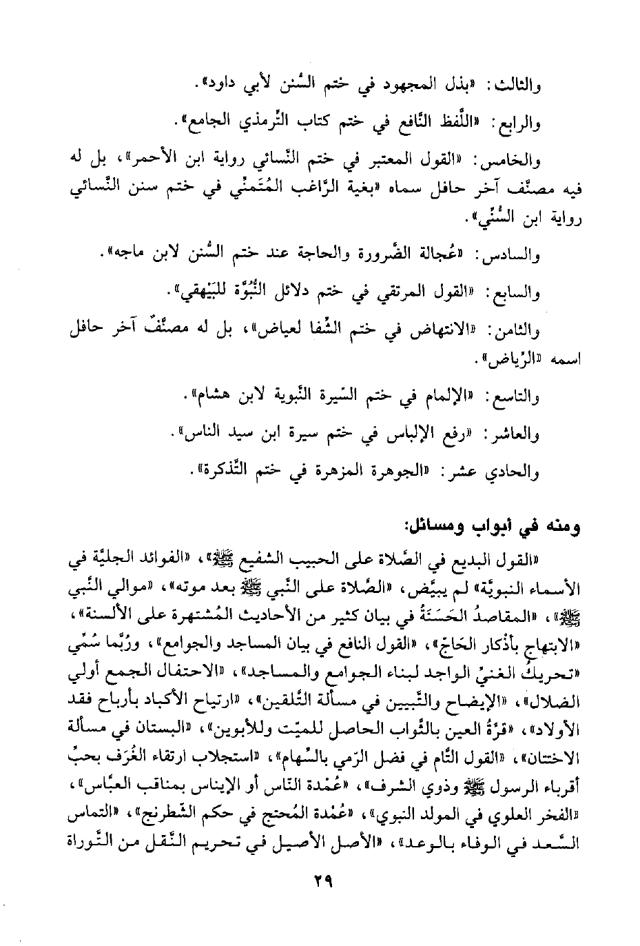 والتاسع: "الإلمام في ختم السّيرة النَّبوية لابن هشام".