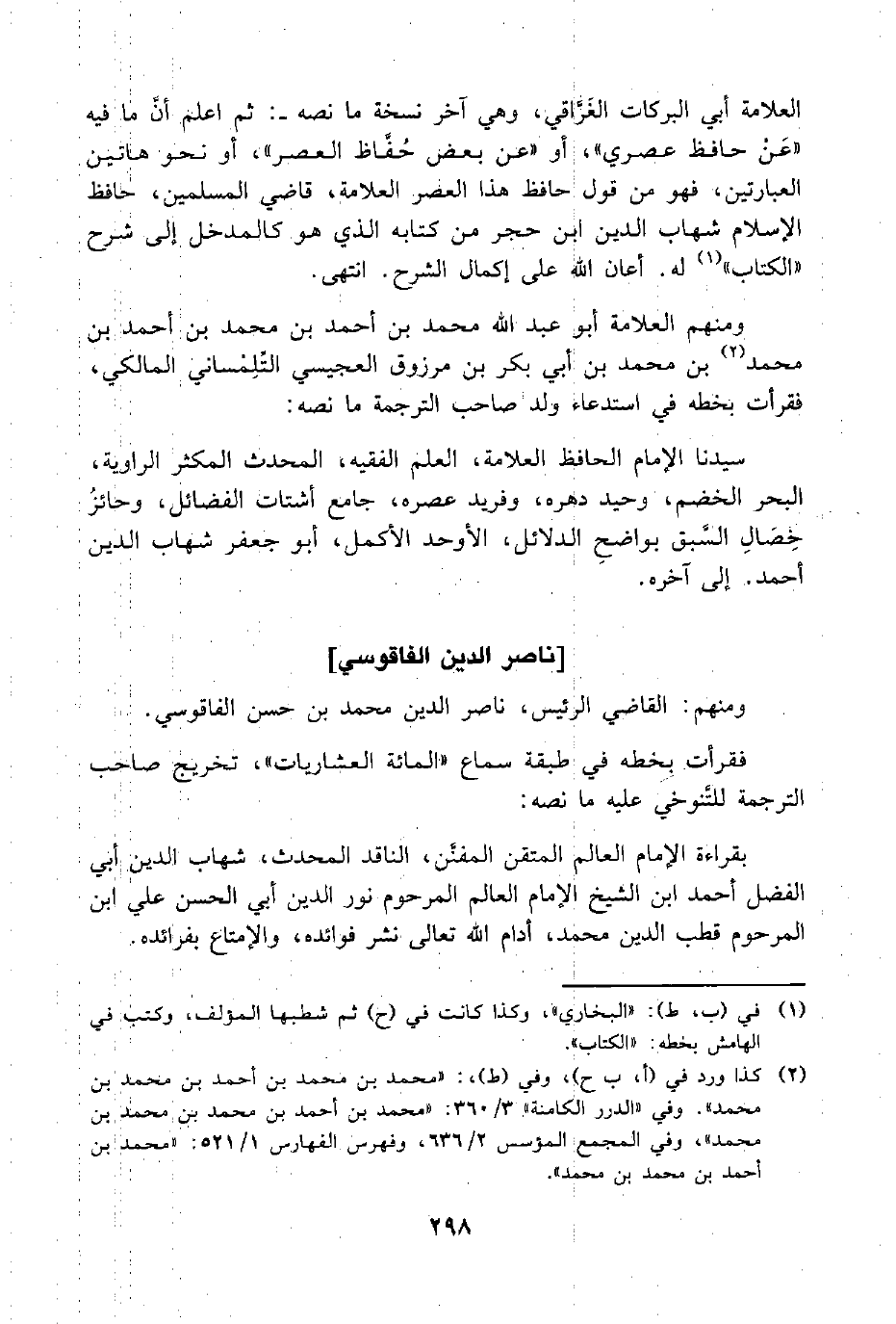 (¬2) كذا ورد في (أ، ب، ح)، رفي (ط): "محمد بن محمد بن أحمد بن محمد بن محمد". وفي "الدرر الكامنة" 3/ 360: "محمد بن أحمد بن محمد بن محمد بن محمد"، وفي المجمع المؤسس 2/ 636، وفهرس الفهارس 1/ 521: "محمد بن أحمد بن محمد بن محمد".
