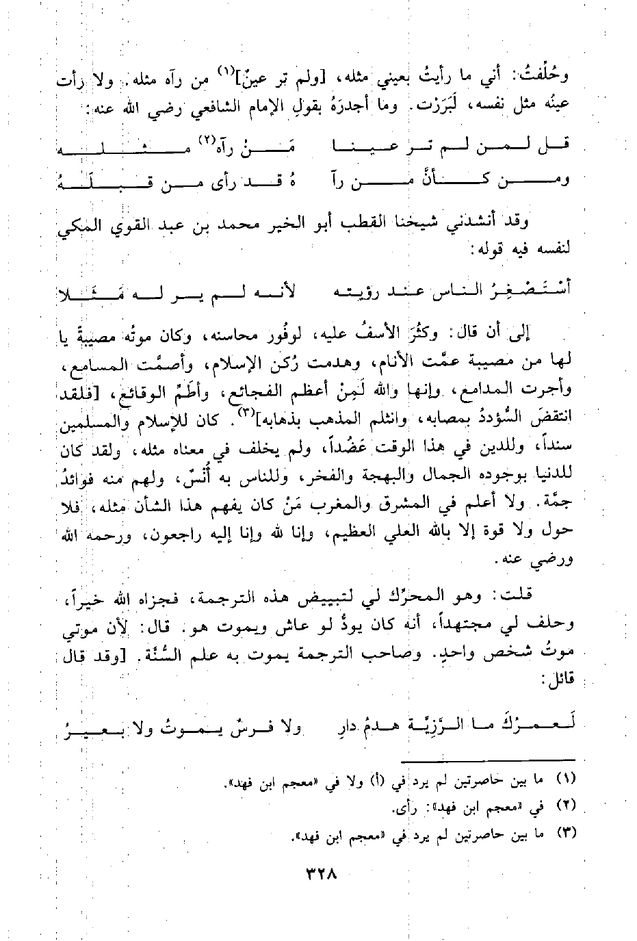 وقد أنشدني شيخنا القطب أبو الخير محمد بن عبد القوي المكي لنفسه فيه قوله: