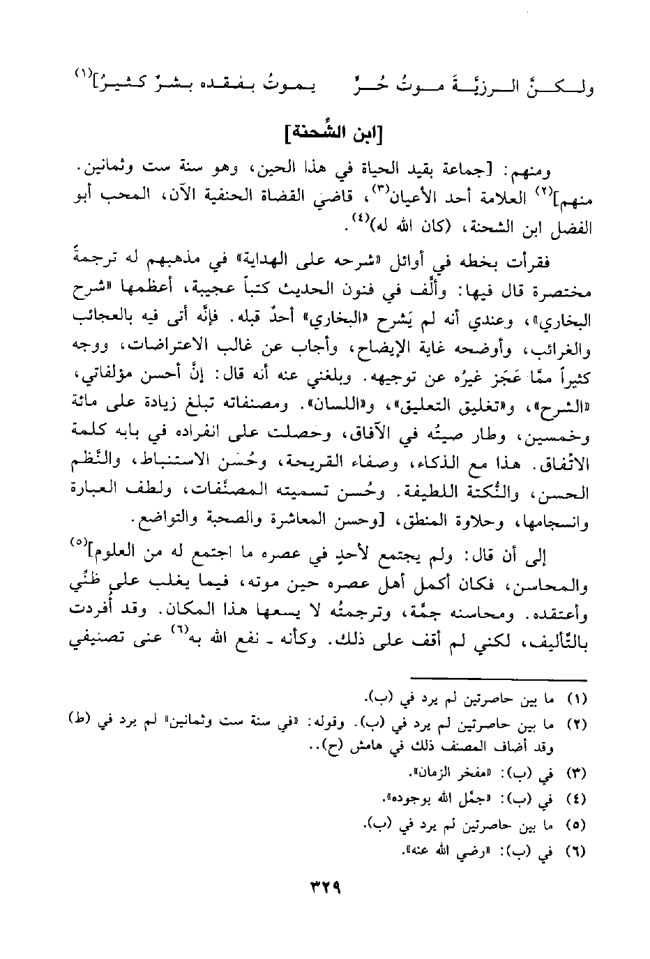 ومنهم: [جماعة بقيد الحياة في هذا الحين، وهو سنة ست وثمانين. منهم] (¬2) العلامة أحد الأعيان (¬3)، قاضي القضاة الحنفية الآن، المحب أبو الفضل ابن الشحنة، (كان اللَّه له) (¬4).