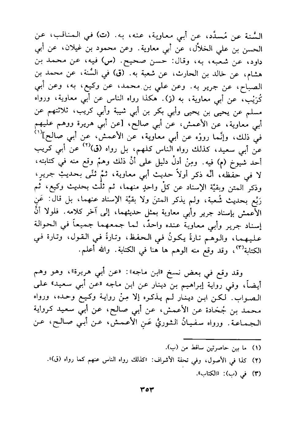وقد وقع في بعض نسخ "ابن ماجه": "عن أبي هريرة"، وهو وهم أيضًا، وفي رواية إبراهيم بن دينار عن ابن ماجه "عن أبي سعيد" على الصواب. لكن ابن دينار لم يذكره إلا مِنْ رواية وكيع وحده، ورواه محمد بن جُحَادة عن الأعمش، عن أبي صالح، عن أبي سعيد كرواية الجماعة. ورواه سفيانُ الثوريُّ عَنِ الأعمش، عن أبي صالح، عن