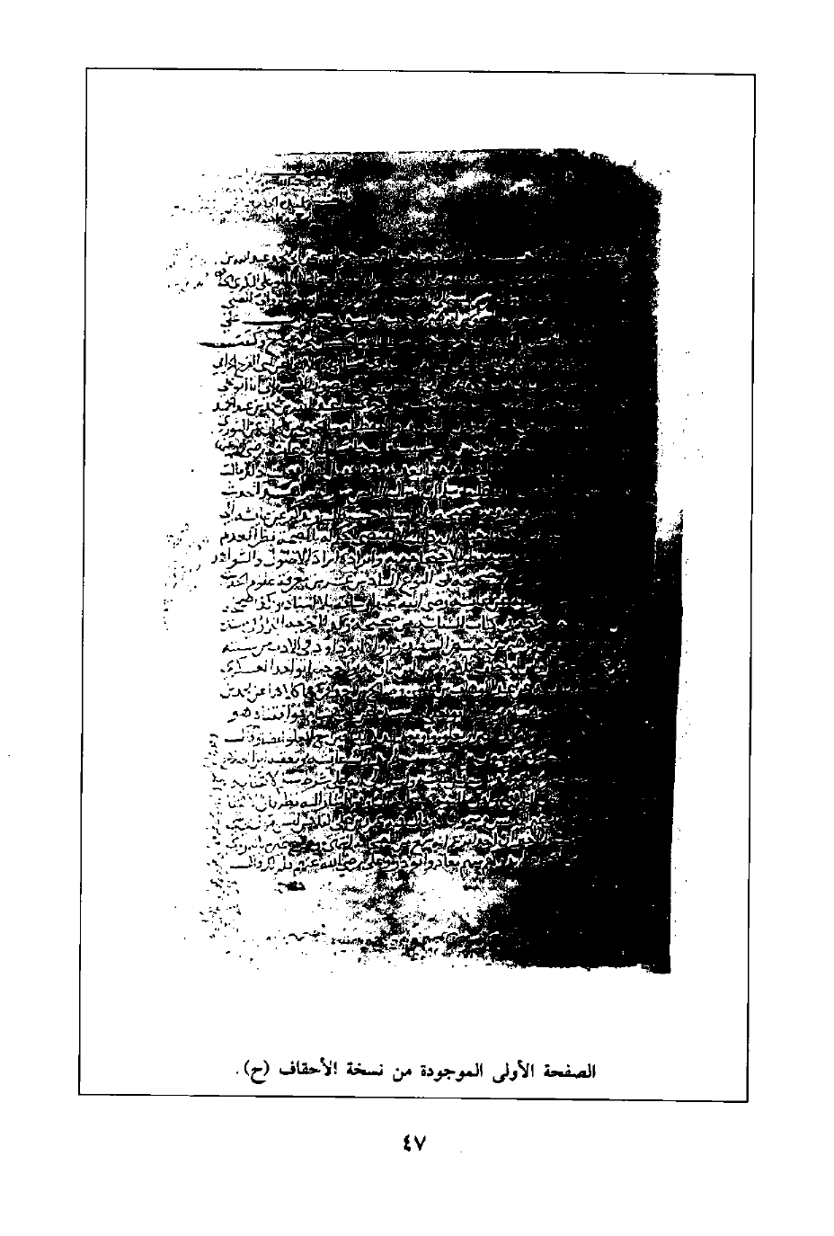 الصفحة الأولى الموجودة من نسخة الأحقاف (ح)