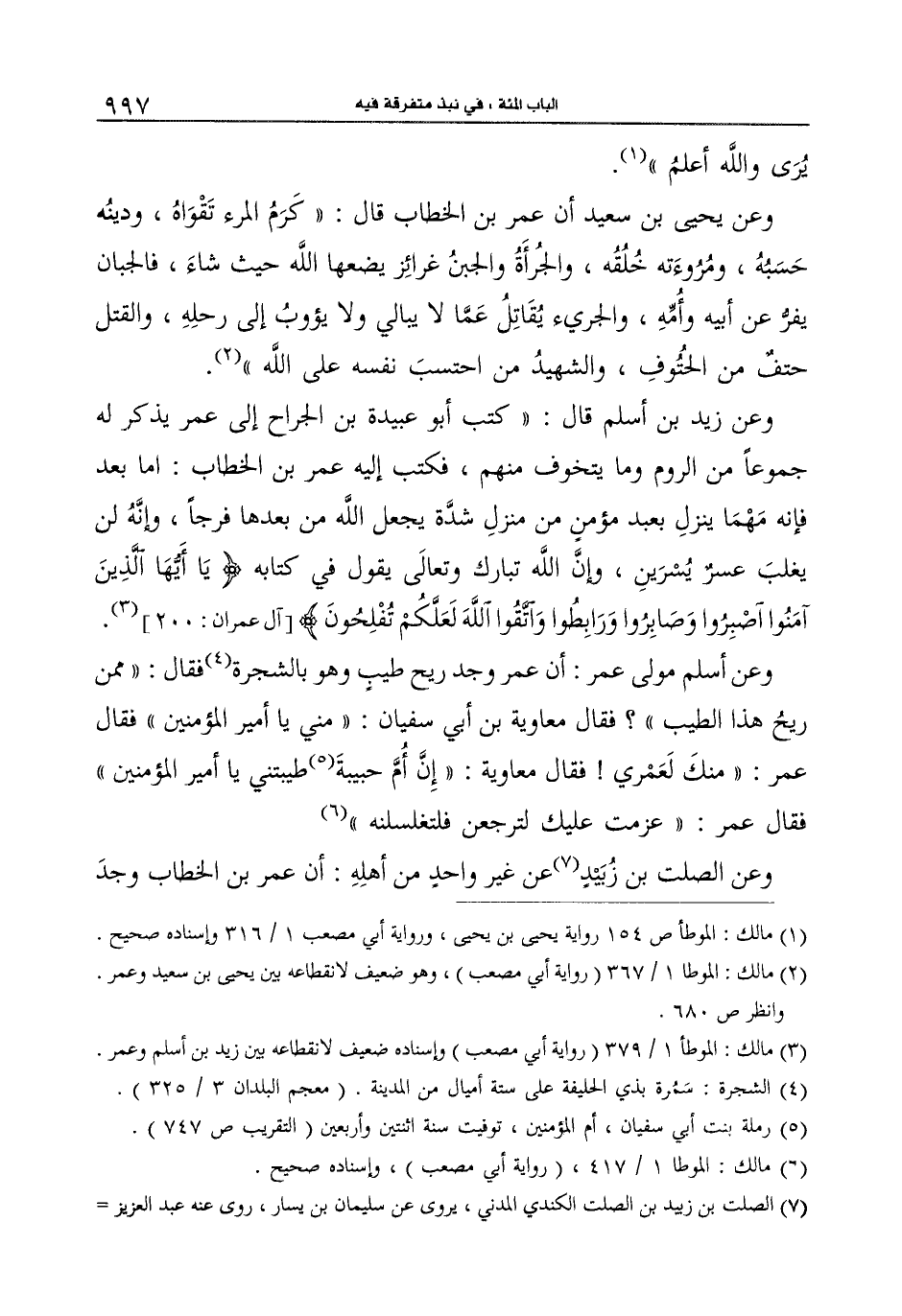 1 مالك: الموطّأ (رواية يحبى بن يحيى) ص 154، ورواية أبي مصعب1/316، وإسناده صحيح.