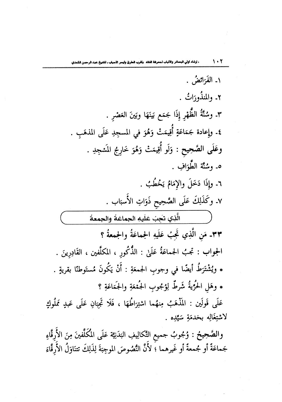 33- مَنِ الَّذِي تَجِبُ عَلَيهِ الجماعَةُ والجمعةُ؟