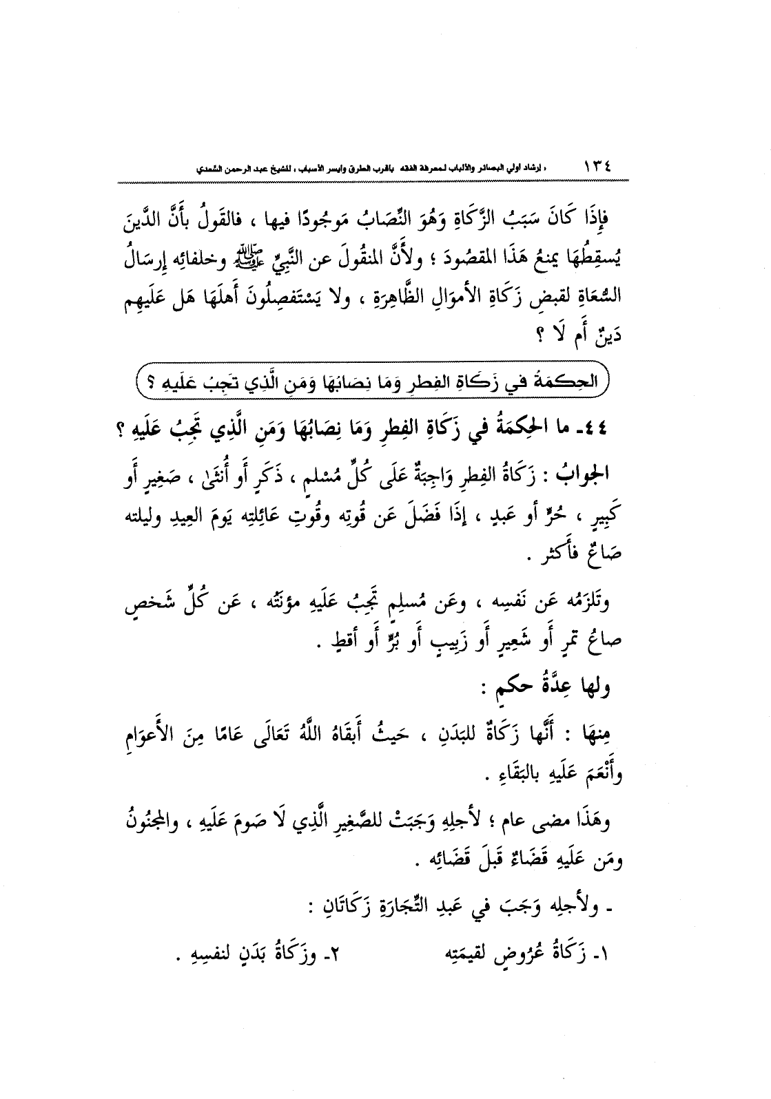 44- ما الحِكمَةُ في زَكَاةِ الفِطرِ وَمَا نِصَابُهَا وَمَنِ الَّذِي تَجِبُ عَلَيهِ؟