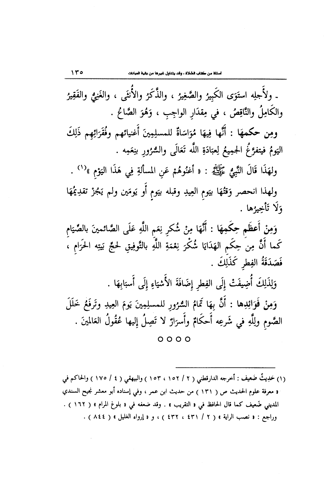 ولهَذَا قَالَ النَّبيُّ - صلى الله عليه وسلم -: «أغنُوهُم عَنِ المسألةِ فِي هَذَا اليَوْمِ» .