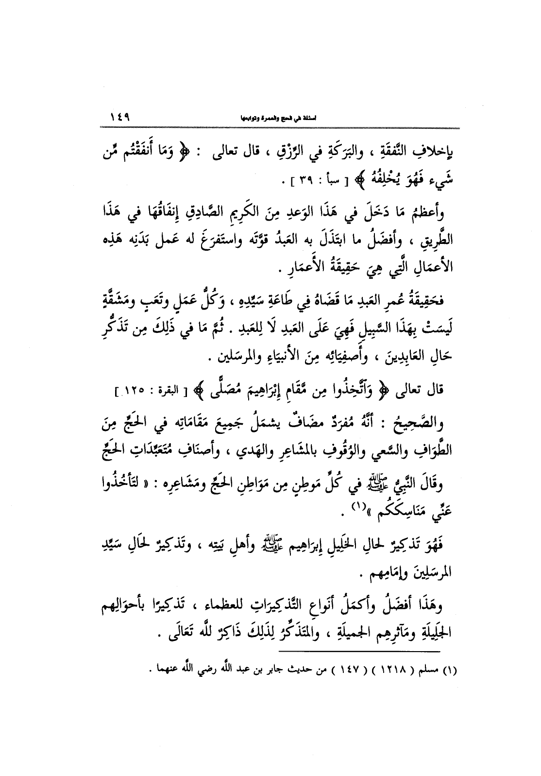 وأعظمُ مَا دَخَلَ في هَذَا الوَعدِ مِنَ الكَرِيمِ الصَّادِقِ إنفاقها في هَذَا الطرِيقِ، وأفضَلُ ما ابتَذَلَ به العَبدُ قوَّتَهُ واستَفرَغَ له عَمل بَدَنِه هَذِه اَلأَعْمَال الَّتِي هِيَ حَقِيقَةُ الأَعمَارِ.