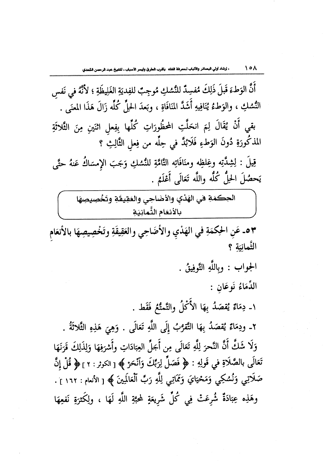 53- عَنِ الحِكمَةِ في الهَدْيِ والأضَاحِي والعَقِيقَةِ وتَخْصِيصِهَا بالأنعَامِ الثَّمانِيَةِ؟
