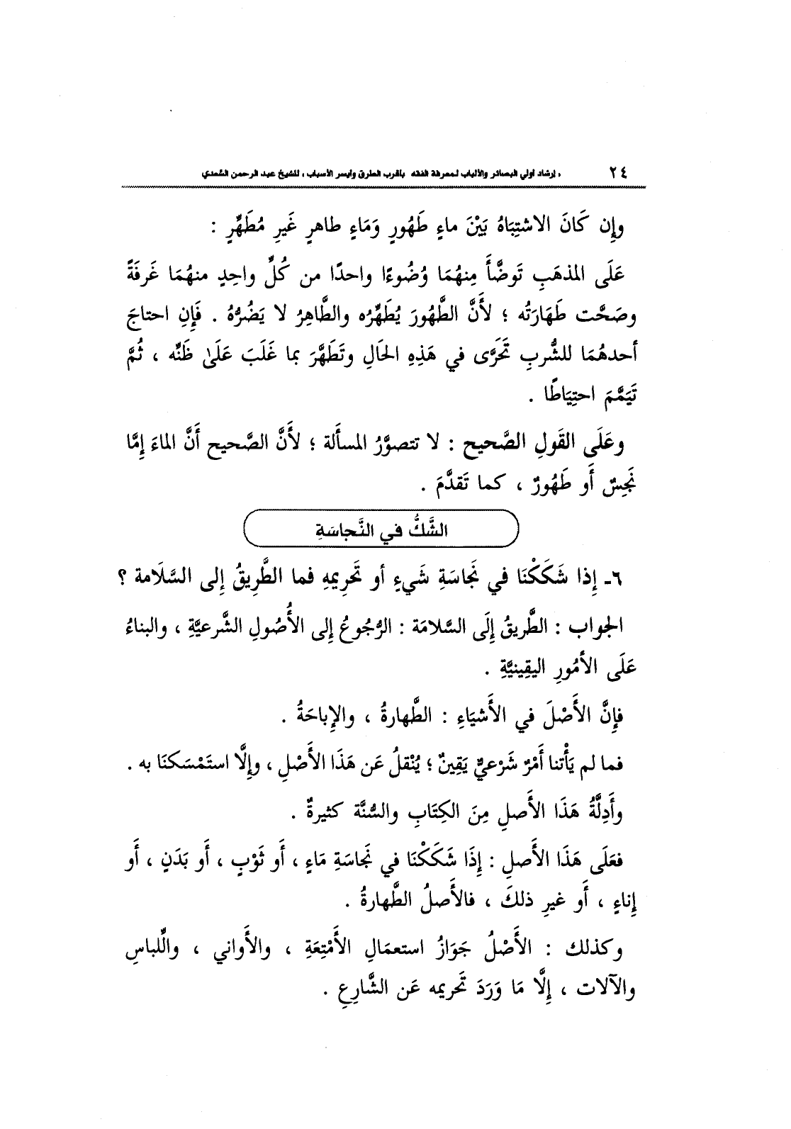 6- إِذا شككنا في نجاسة شيء أو تَحرِيمهِ فما الطَّرِيق إِلى السَّلامَة؟