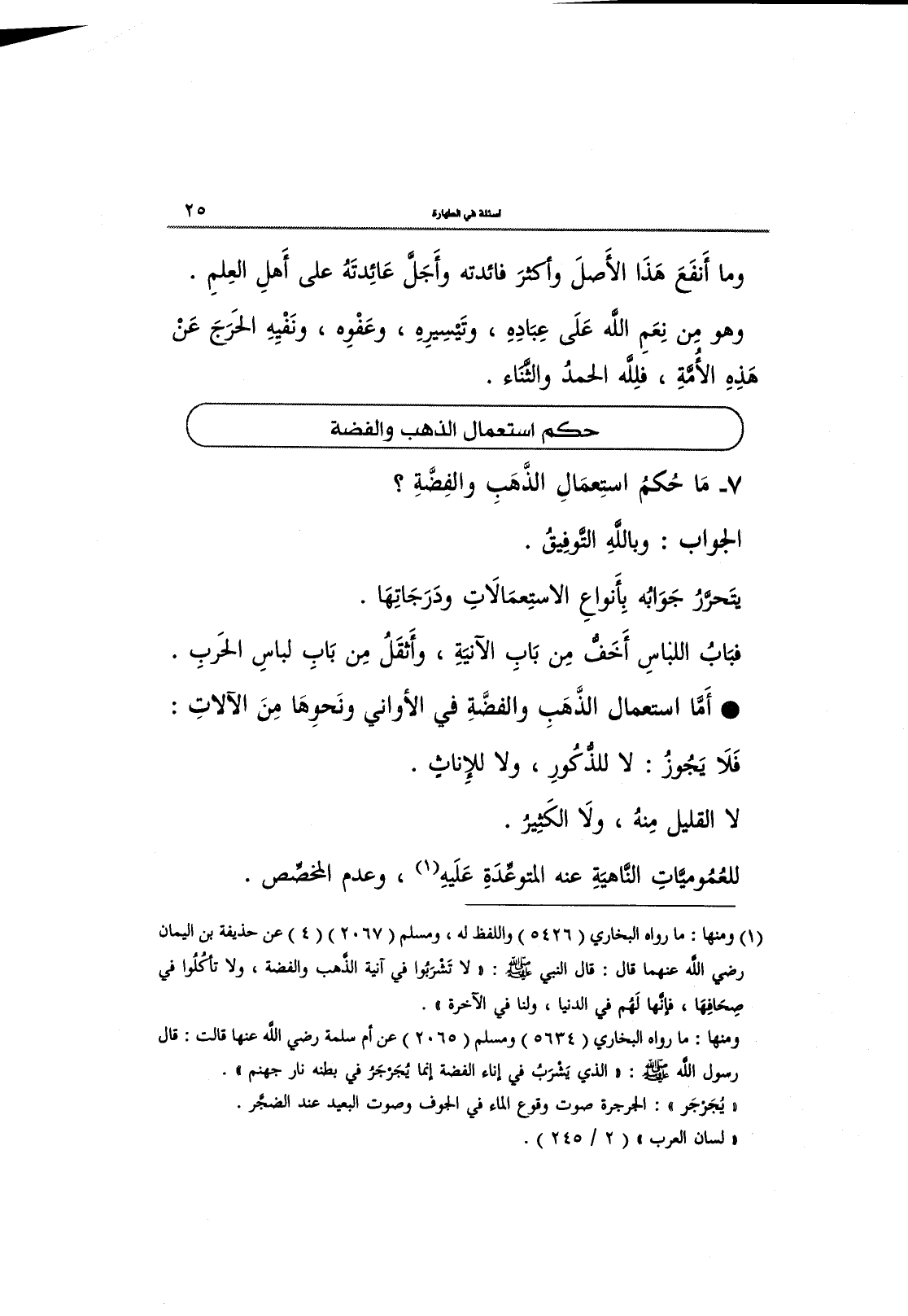 7- مَا حُكمُ استِعمَالِ الذهَبِ والفِضةِ؟