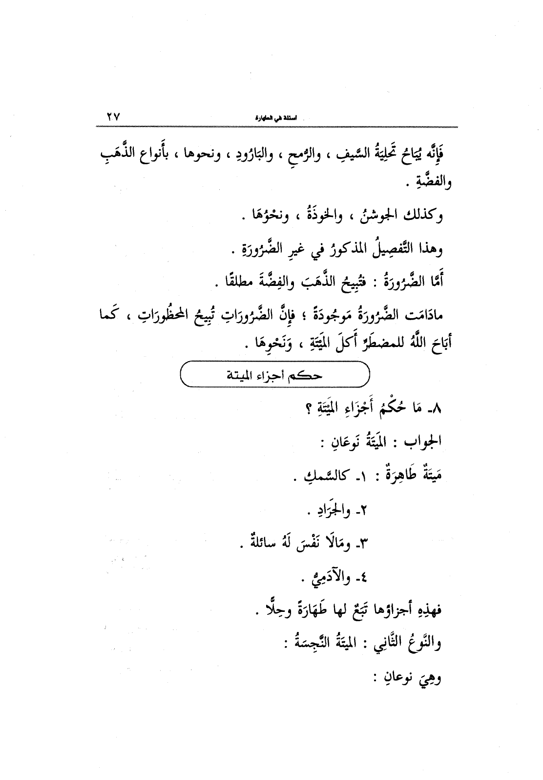 8- مَا حُكْمُ أَجْزَاءِ الْميتَة؟