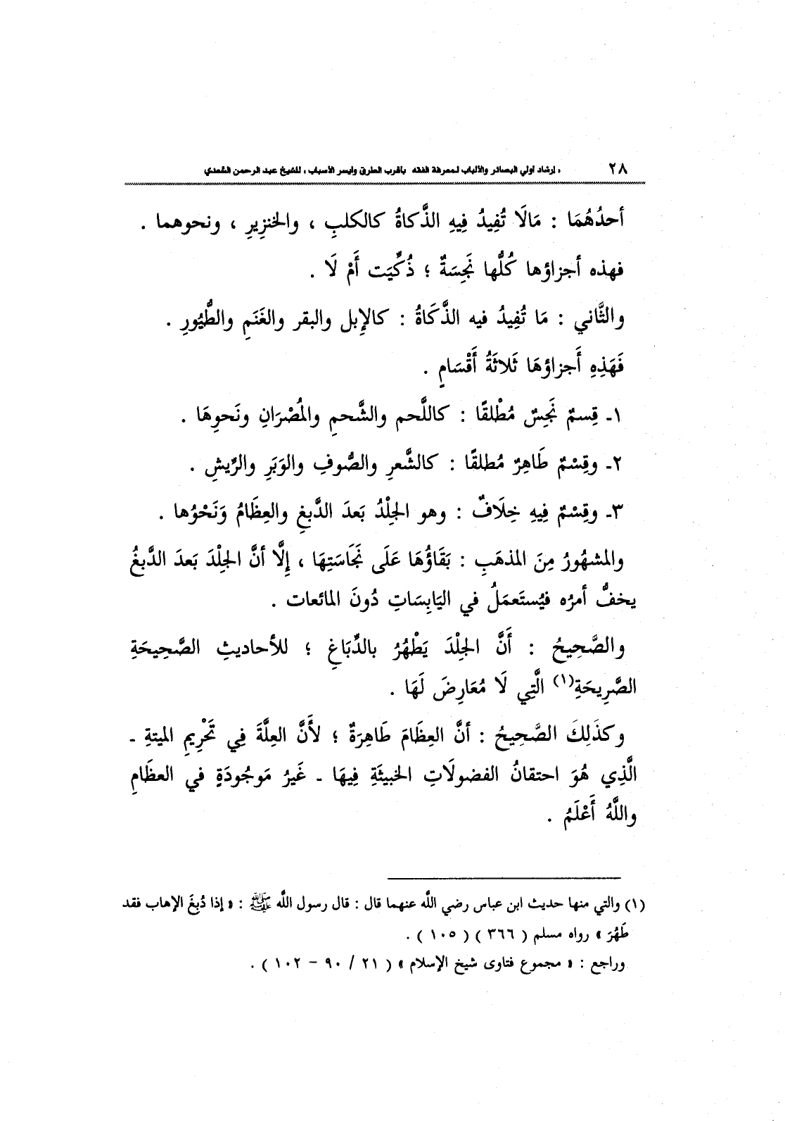 3- وقسم فِيهِ خِلافٌ: وهو الجِلْدُ بَعدَ الدَّبْغ والعِظَام وَنَحْوهَا.