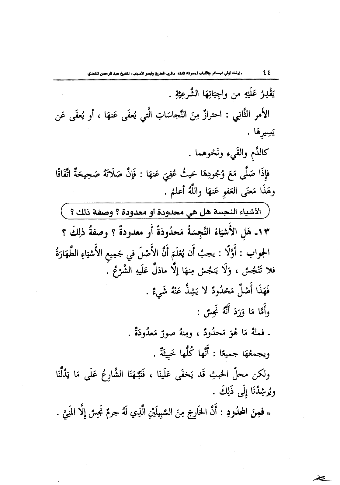 13- هَلِ الأشياء النَّجِسَةُ مَحْدُودَة أَو معدودة؟ وصفةُ ذلِكَ؟