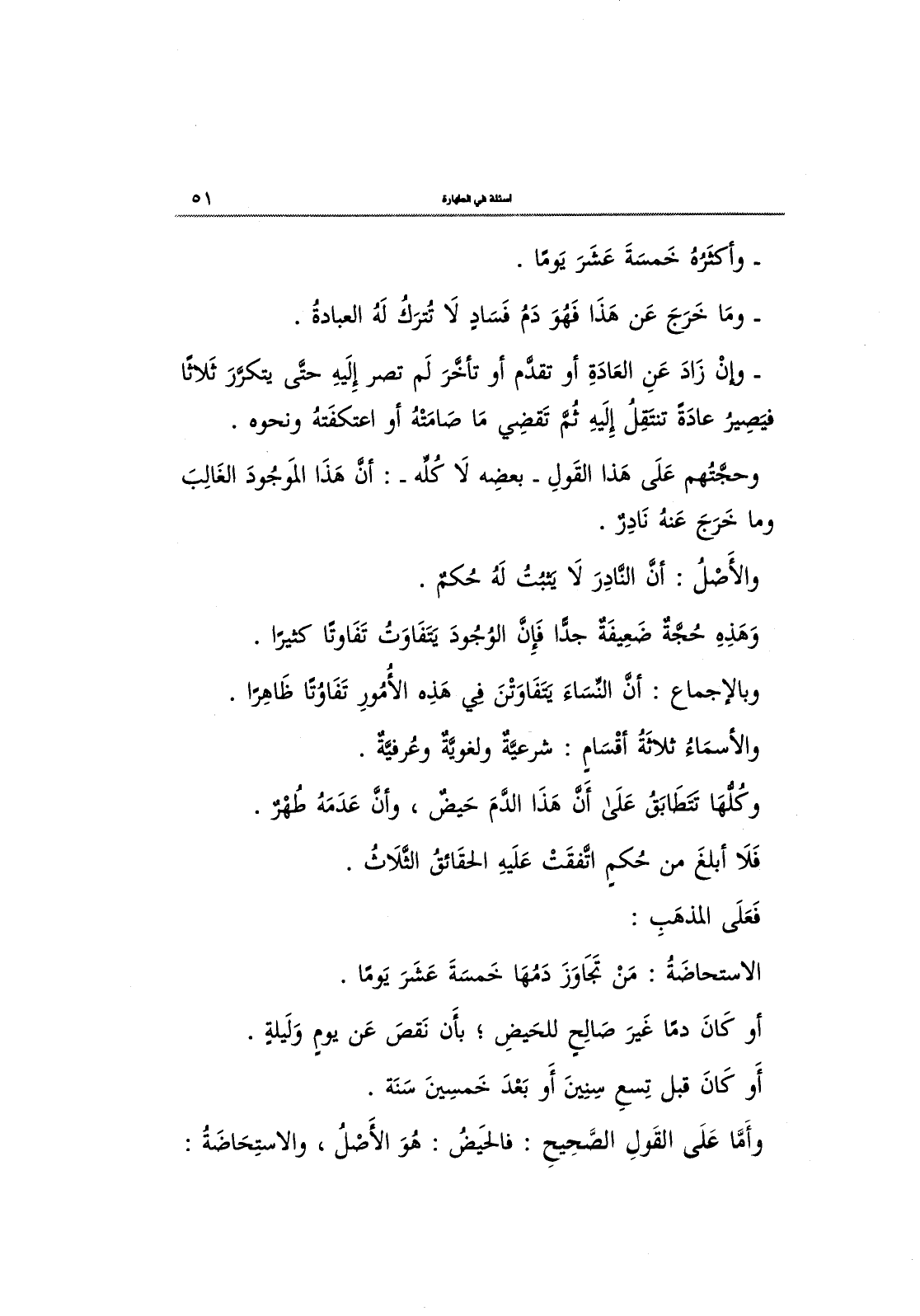 - ومَا خَرَجَ عن هَذَا فَهُوَ دَمُ فَسَادٍ لا تُترَكُ لَهُ العِبَادَة.