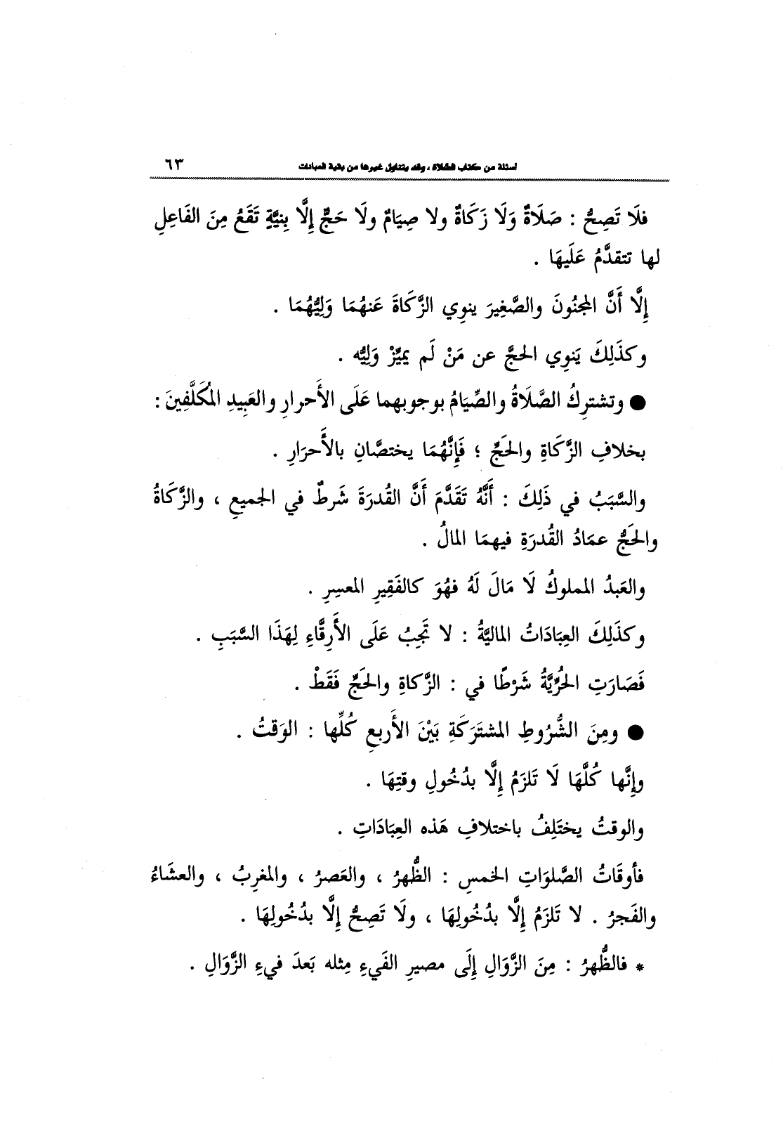 فأوقَاتُ الصِّلْوَات الخمسُِ: الظُّهْر، والعَصرُ، وَالمغرِبُ، وَالعشَاءُ، والفَجرُ. لا تَلزَمُ إلاّ بِدُخُولِهَا، ولا تَصِحّ إلاّ بِدُخُولِهَا.
