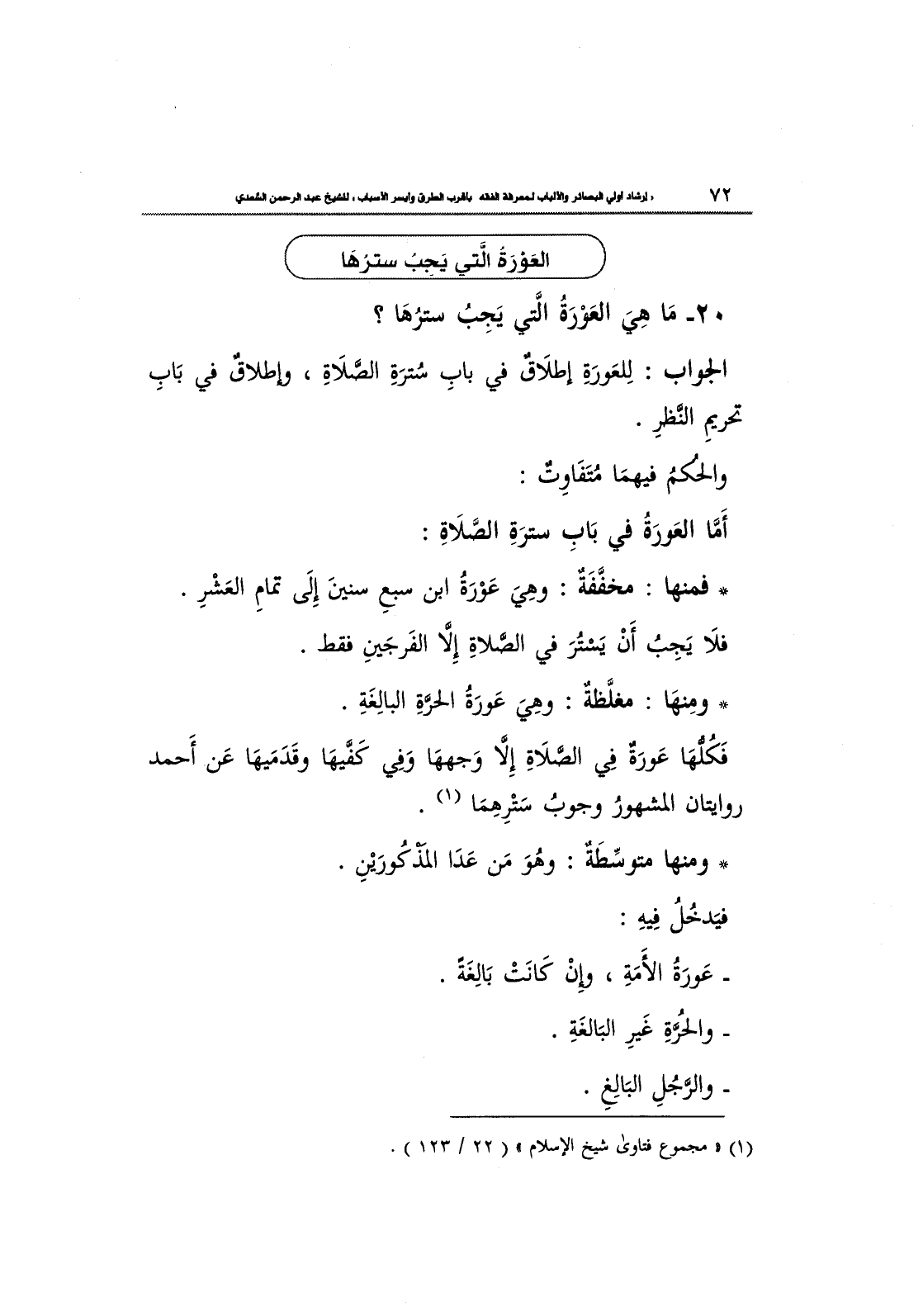 20- مَا هي العَوْرَةُ الَّتي يَجِبُ سَترُهَا؟