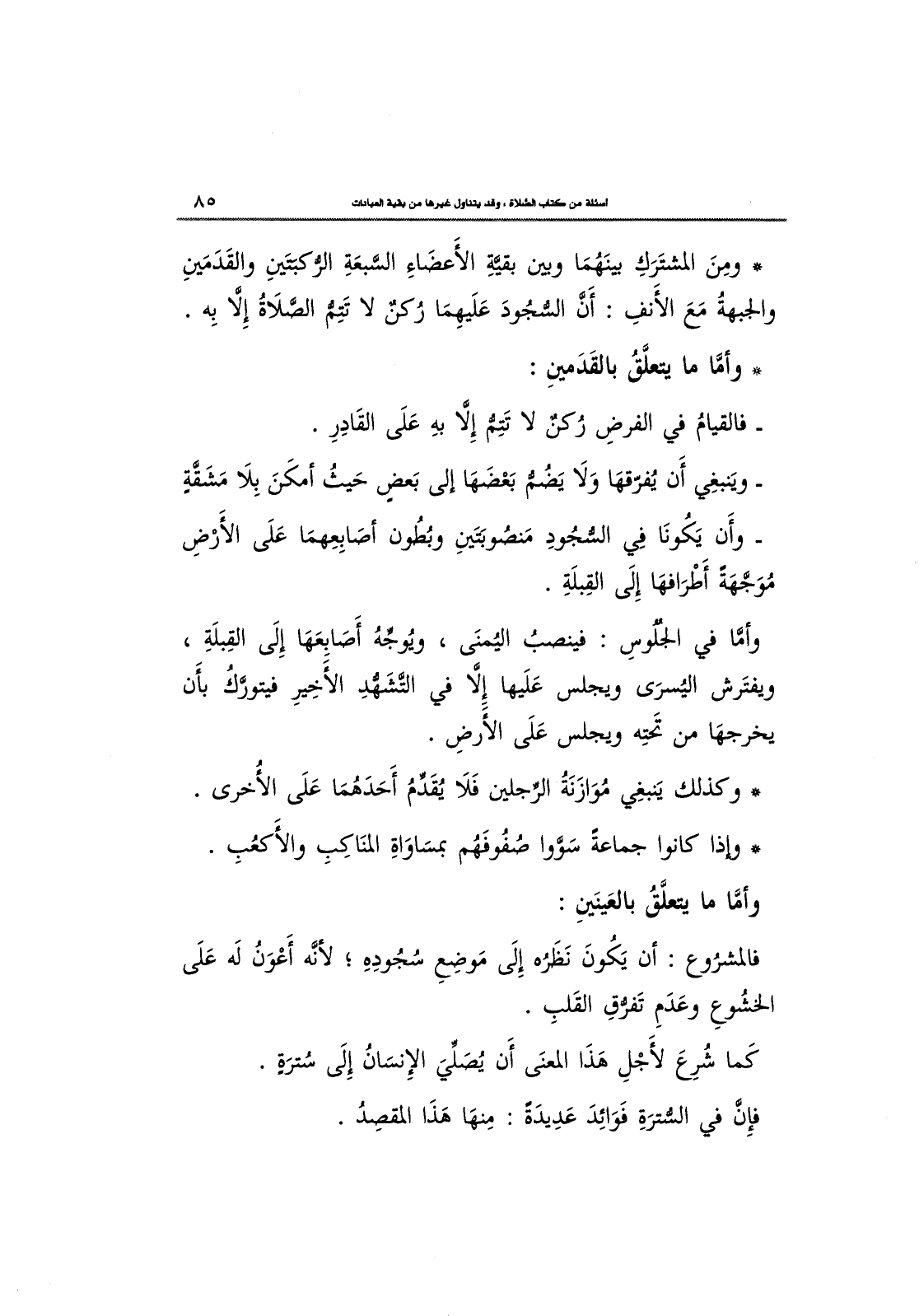 وَمِنَ المشتَرَكِ بينَهُمَا وَيَبِنّ بَقِيهِ الأَعضَاءِ السَّبُعَة الرُّكْبتَينِ وَالْقُدْمِينَ والجبهة مَعَ الأَنفِ: أَن السُّجُود عَلَيهِمَا رُكنٌ لا تتم الصَّلاةُ إلاّ بِهِ.