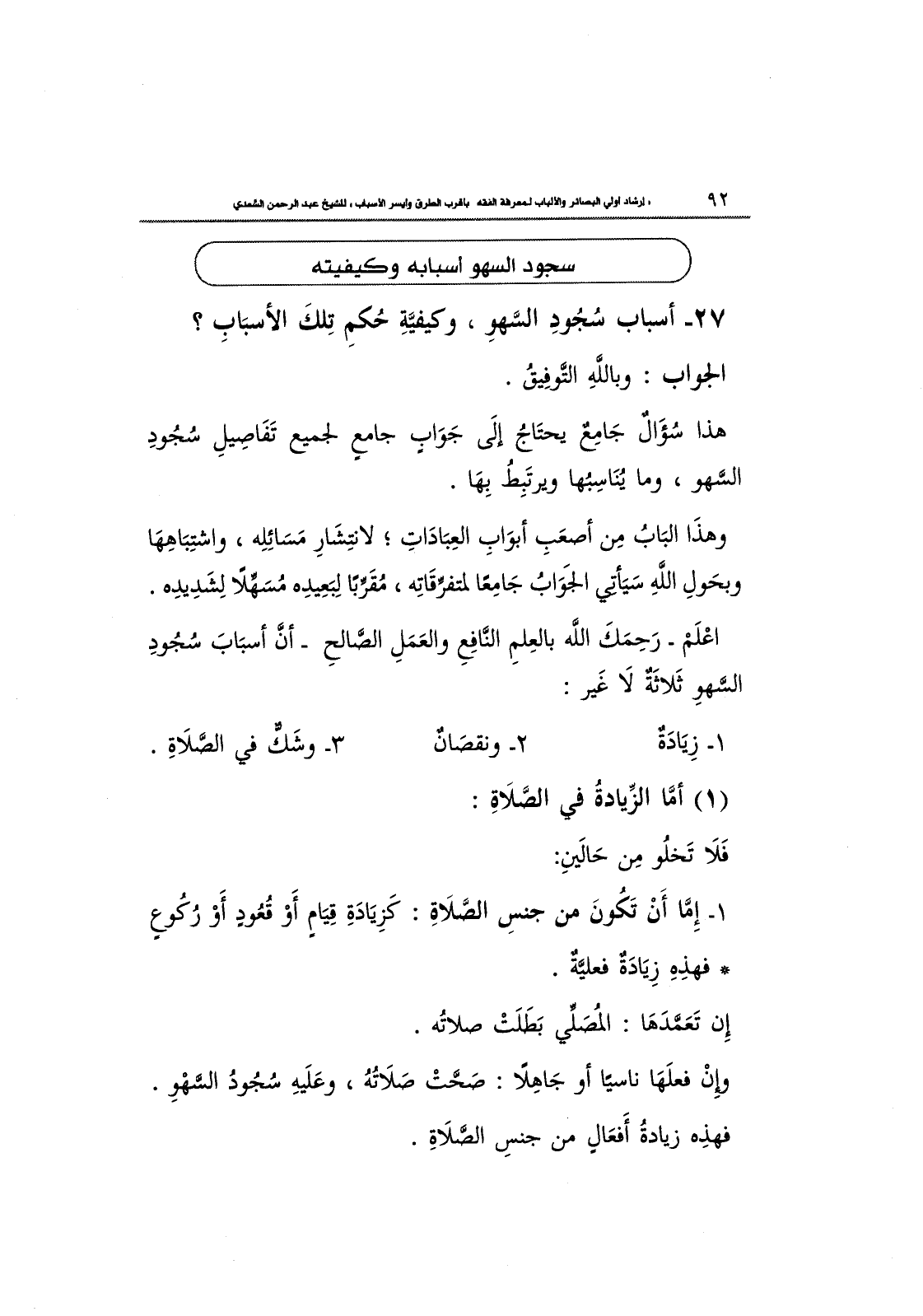 27- أسباب سُجُودِ اَلسَّهْو، وكيفيَّةِ حُكمِ تِلكَ الأسبَابِ؟