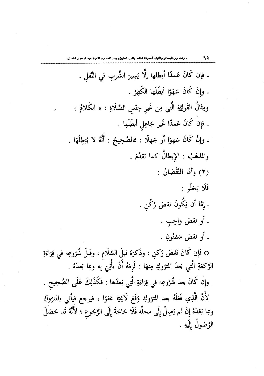 - وَإِنْ كَانَ سَهْوًا أبطَلَها الكَثِيرُ.