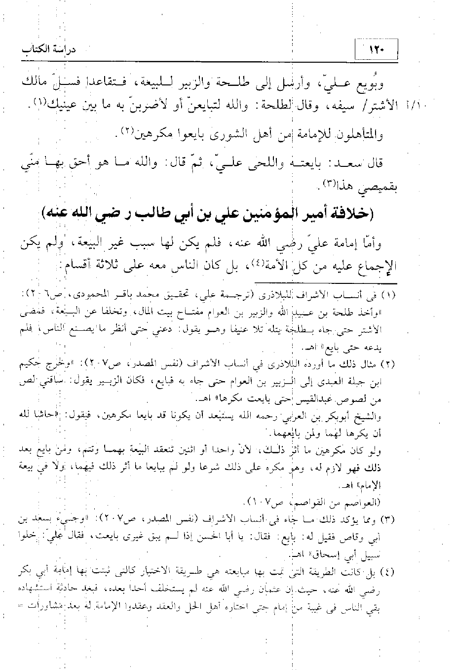 وأما إمامة علي رضي الله عنه فلم يكن لها سبب غير البيعة. ولم يكن الإجماع عليه من كل الأمة، بل كانت الناس معه على ثلاثة أقسام: