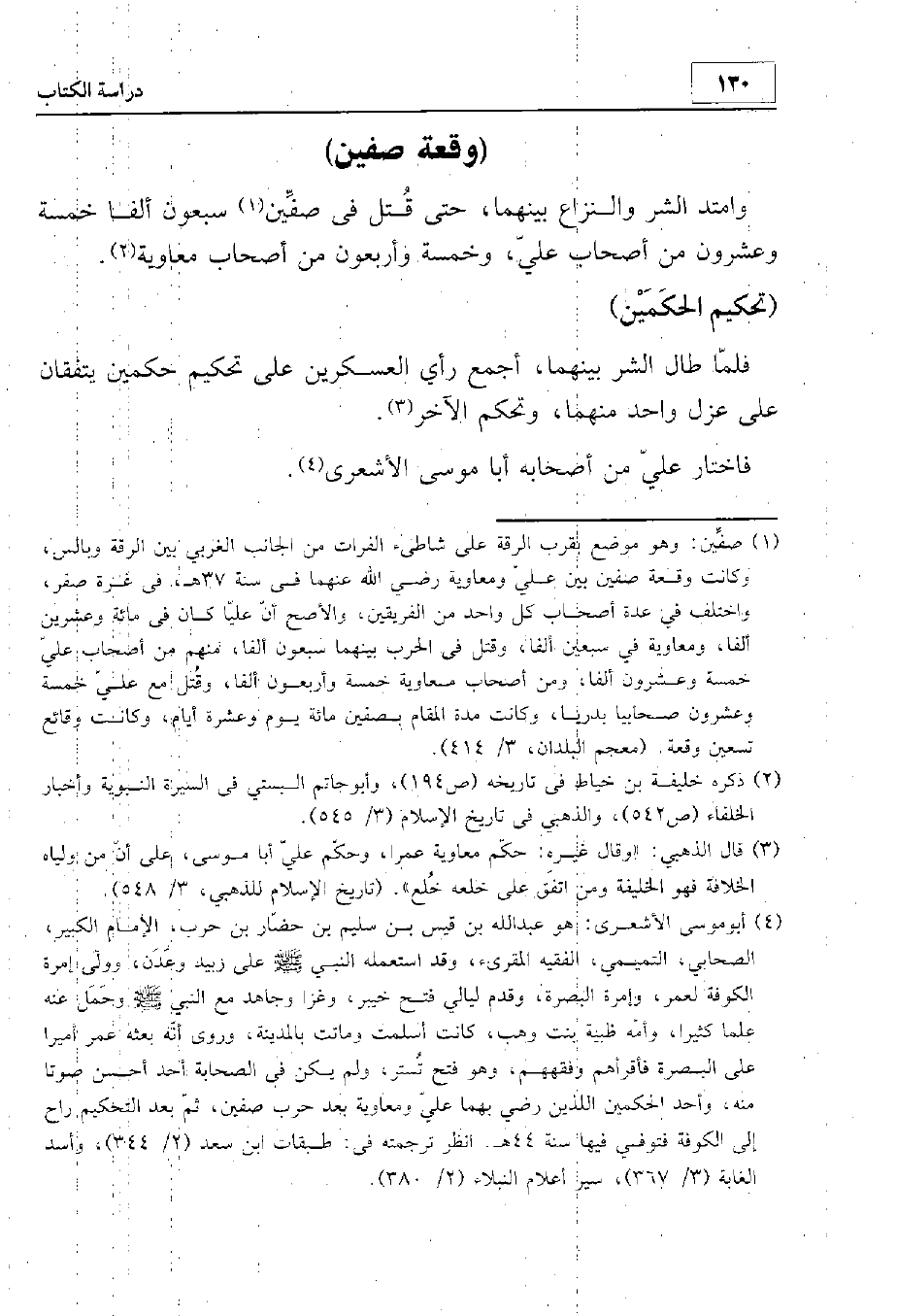 وامتد الشر والنزاع بينهما حتى قتل في صفين سبعون ألفا، خمسة وعشرون من أصحاب علي وخمسة وأربعون من أصحاب معاوية. فلما طال الشر بينهما أجمع رأي العسكرين على تحكيم حكمين يتفقان على عزل واحد منهما ويحكم الآخر. فاختار علي من أصحابه أبا موسى الأشعري.