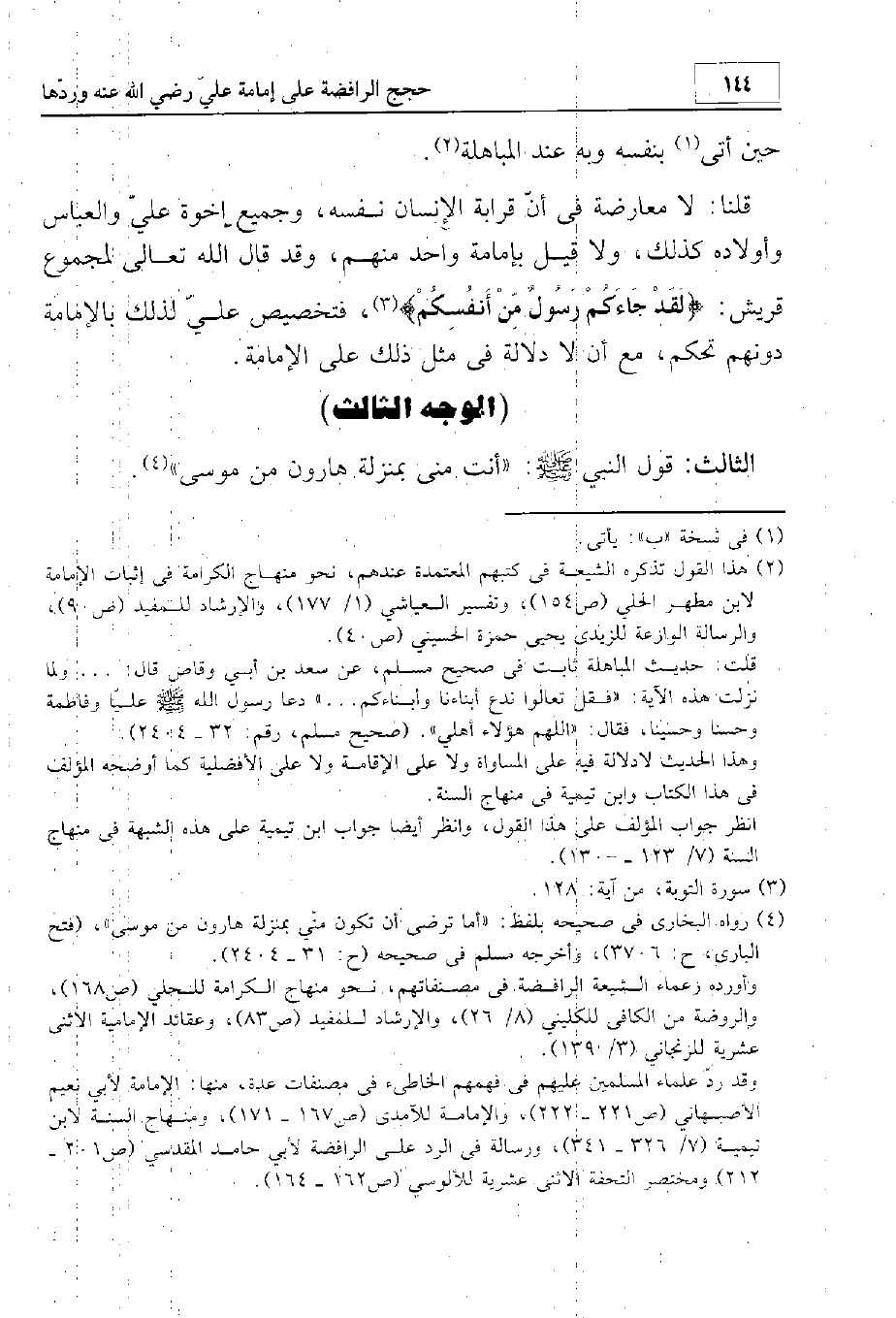(الاحتجاج بحديث أنت مني بمنزلة هارون من موسى)