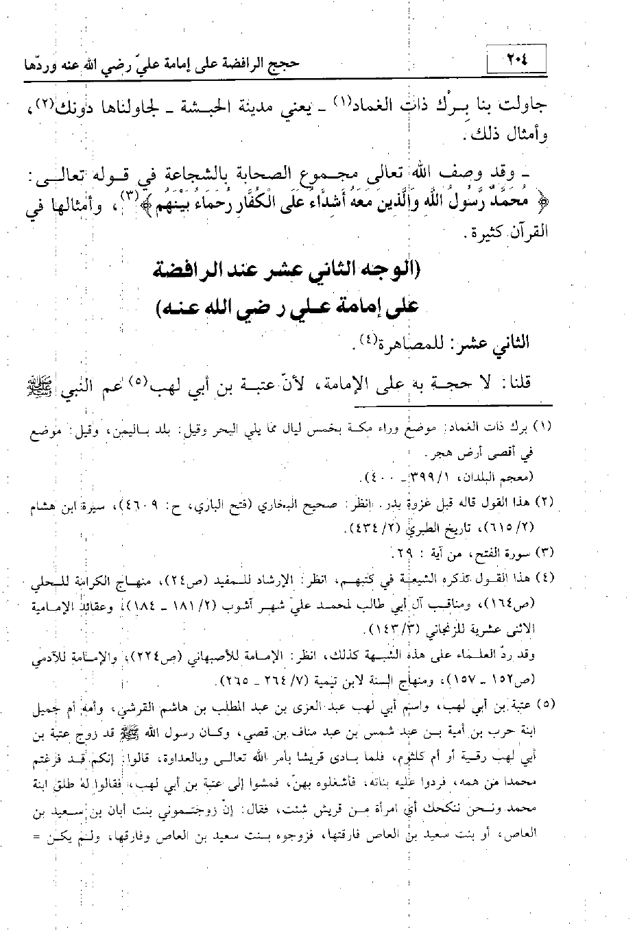 قلنا: لا حجة به على الإمامة، لأن عتبة بن أبي لهب عم النبي - صلى الله عليه وسلم -