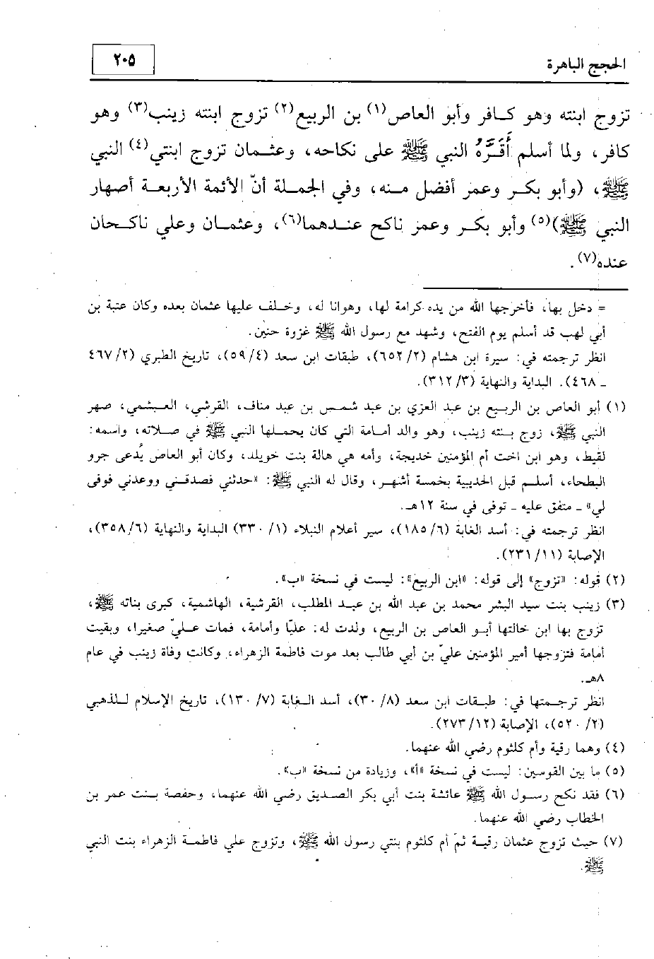 تزوج ابنته وهو كافر. وأبو العاص بن الربيع تزوج ابنته زينت وهو كافر، ولما أسلم أقره النبي - صلى الله عليه وسلم - على نكاحه. وعثمان تزوج ابنتي النبي - صلى الله عليه وسلم -، [وأبو بكر وعمر أفضل منه. وفي الجملة إن الأربعة أصهار النبي - صلى الله عليه وسلم -] وأبو بكر وعمر ناكح عندما. وعثمان وعلي ناكحان عنده.