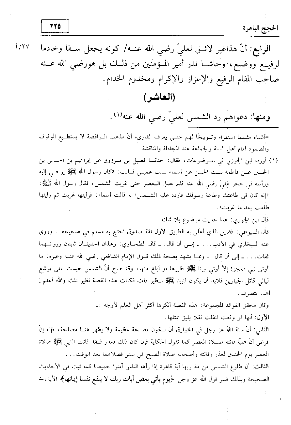ومنها دعواهم رد الشمس لعلي رضي الله عنه.