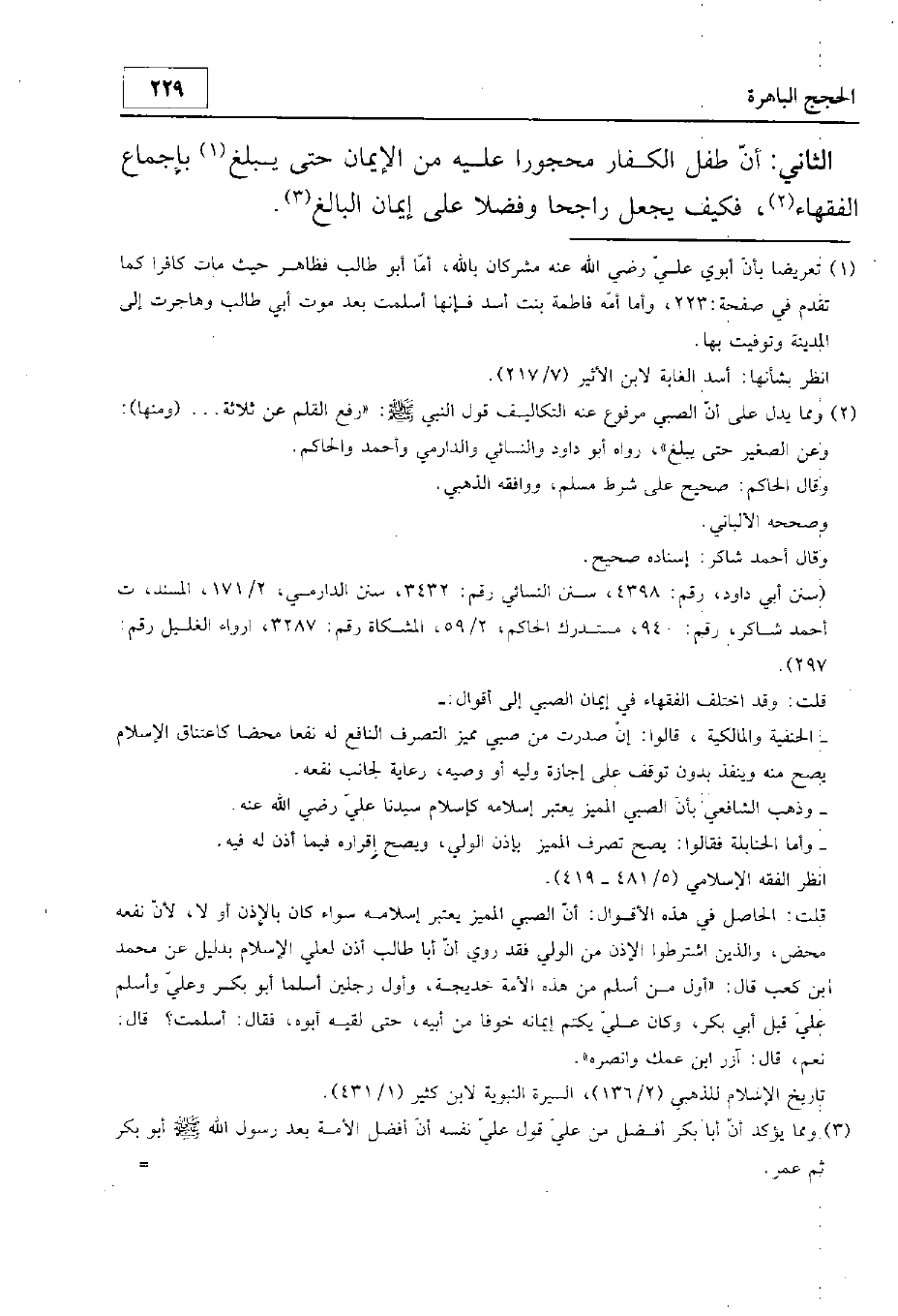 الثاني أن طفل الكفار محجور عليه من الإيمان حتى يبلغ بإجماع الفقهاء، فكيف يجعل راجحا على إيمان البالغ.