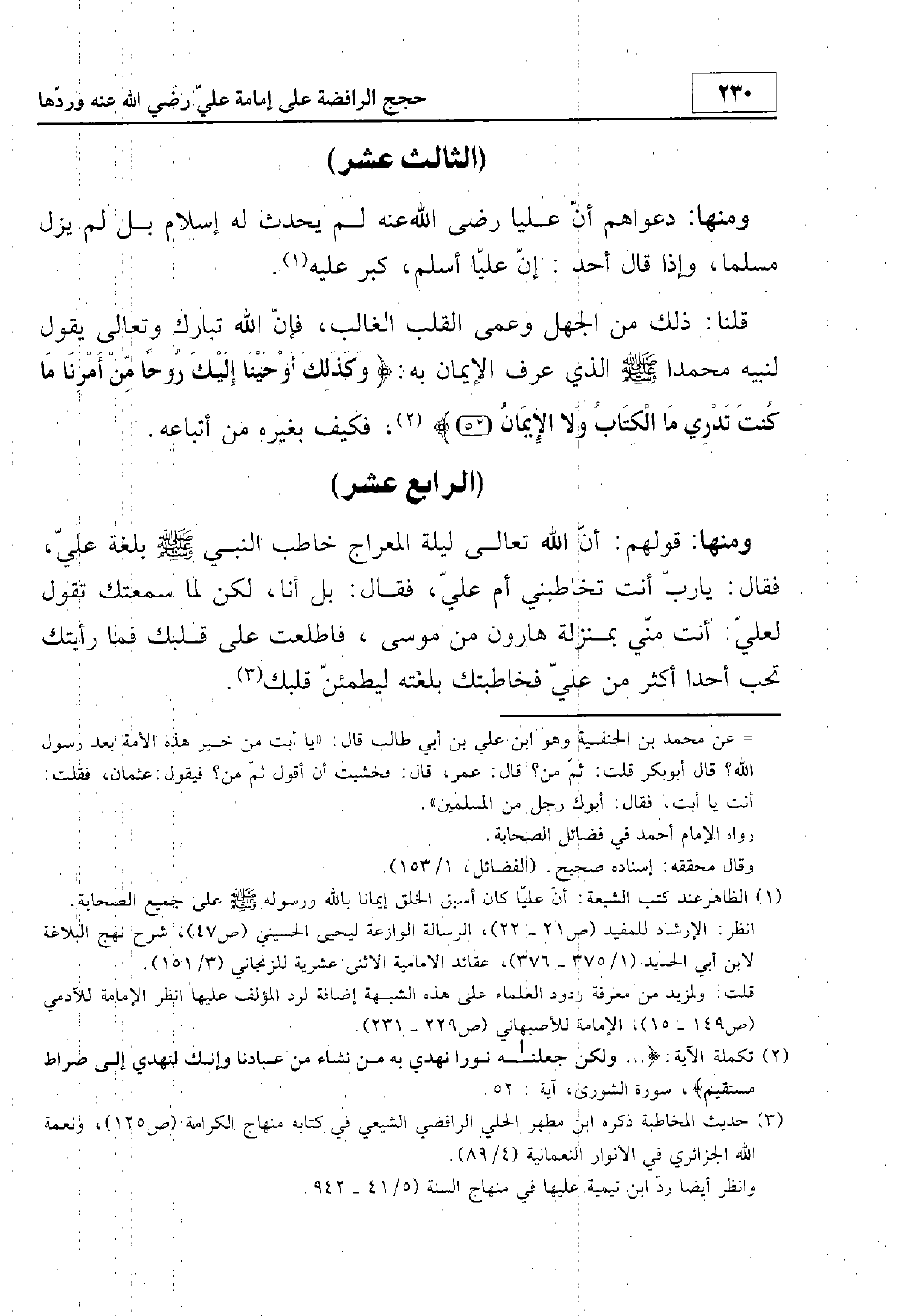 (قولهم إن الله تعالى ليلة المعراج خاطب النبي - صلى الله عليه وسلم - بلغة علي)