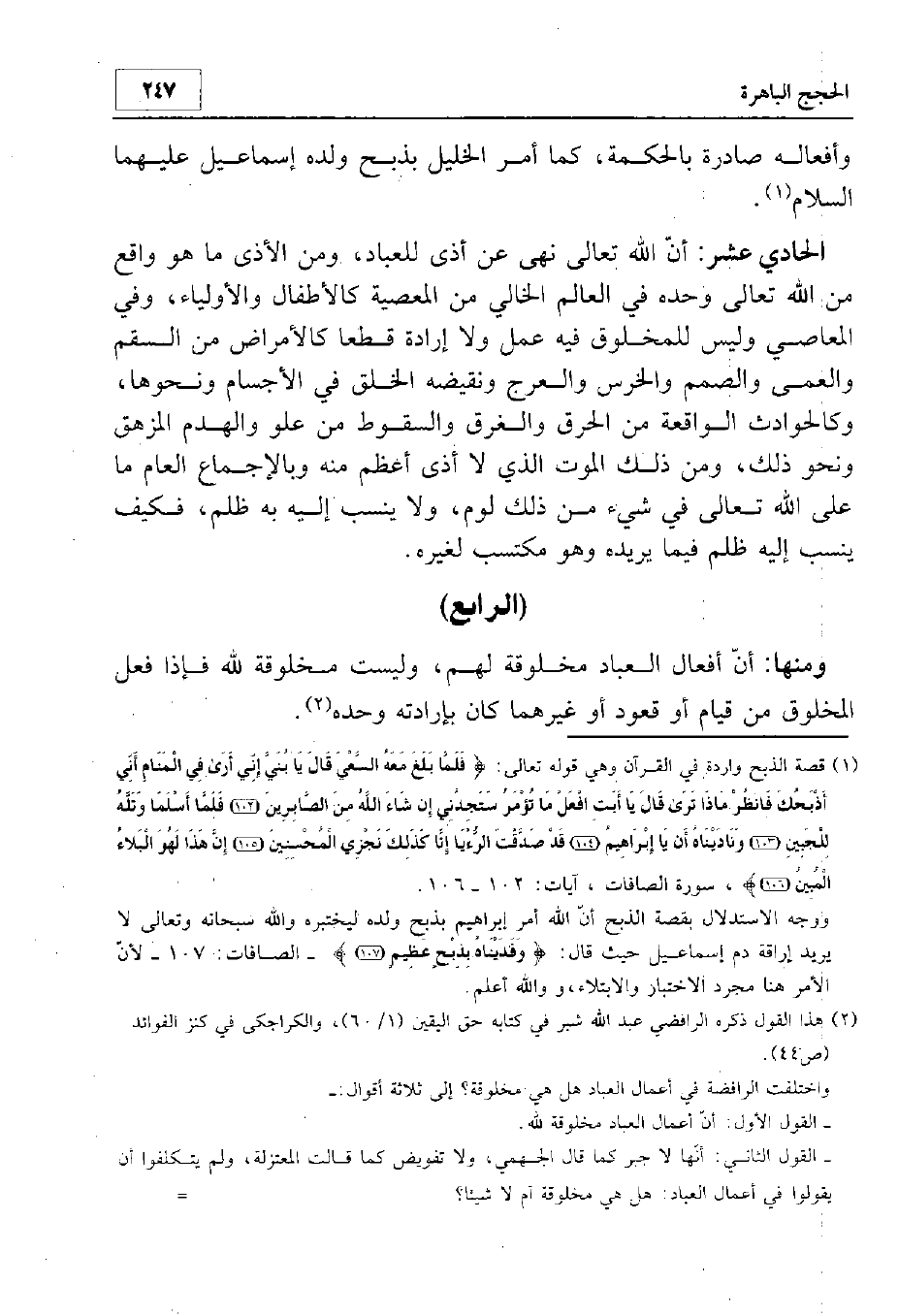 (أن أفعال العباد مخلوقة لهم وليست مخلوقة لله)