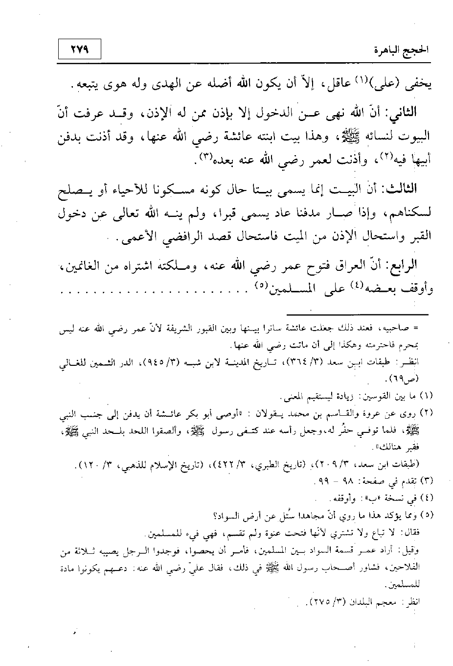 الثالث أن البيت إنما يسمى بيتا حال كونه مسكونا للأحياء أو يصلح لسكناهم، وإذا صار مدفنا عاد يسمى قبرا. ولم ينه الله تعالى عن دخول القبر، واستحال الإذن من الميت، فاستحال قصد الرافضي الأعمى.