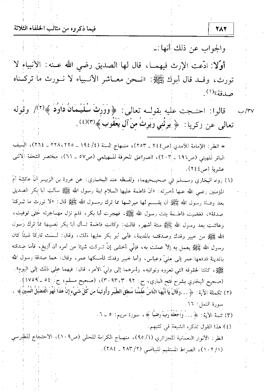 قالوا: احتجت عليه بقوله تعالى: {وَوَرِثَ سُلَيْمَانُ دَاوُودَ} وقوله تعالى عن زكريا: {يَرِثُنِي وَيَرِثُ مِنْ آَلِ يَعْقُوبَ}