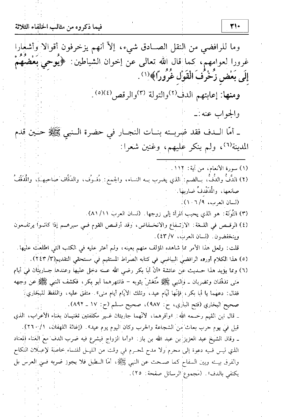 ومنها إعابتهم الدف والتولة والرقص.