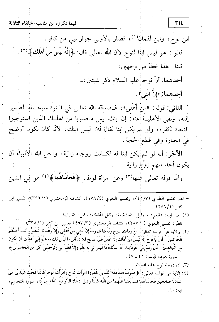 الآخر أنه لو لم يكن ابنا له لكانت زوجته زانية، وأجلّ الله الأنبياء أن يكون أحد منهم زوج زانية. وأما قوله تعالى عنها وعن امرأة لوط: {فَخَانَتَاهُمَا} هو في الدين،