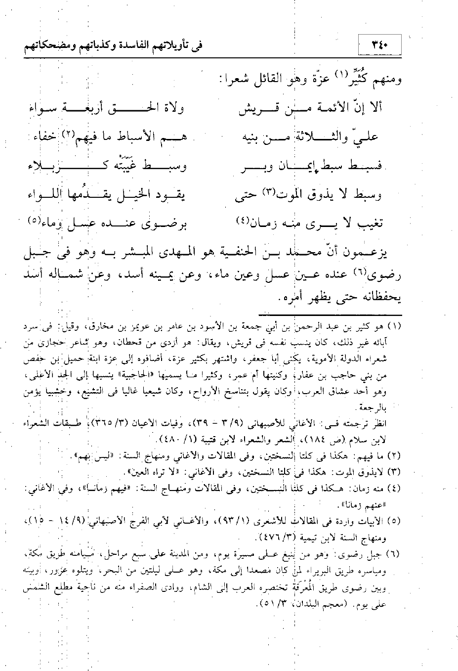 يزعمون أن محمد بن الحنفية هو المهدي المبشر به وهو في جبل رضوى عند عين عسل وعين ماء وعن يمينه أسد وعن شماله أسد يحفظانه حتى يظهر أمره.