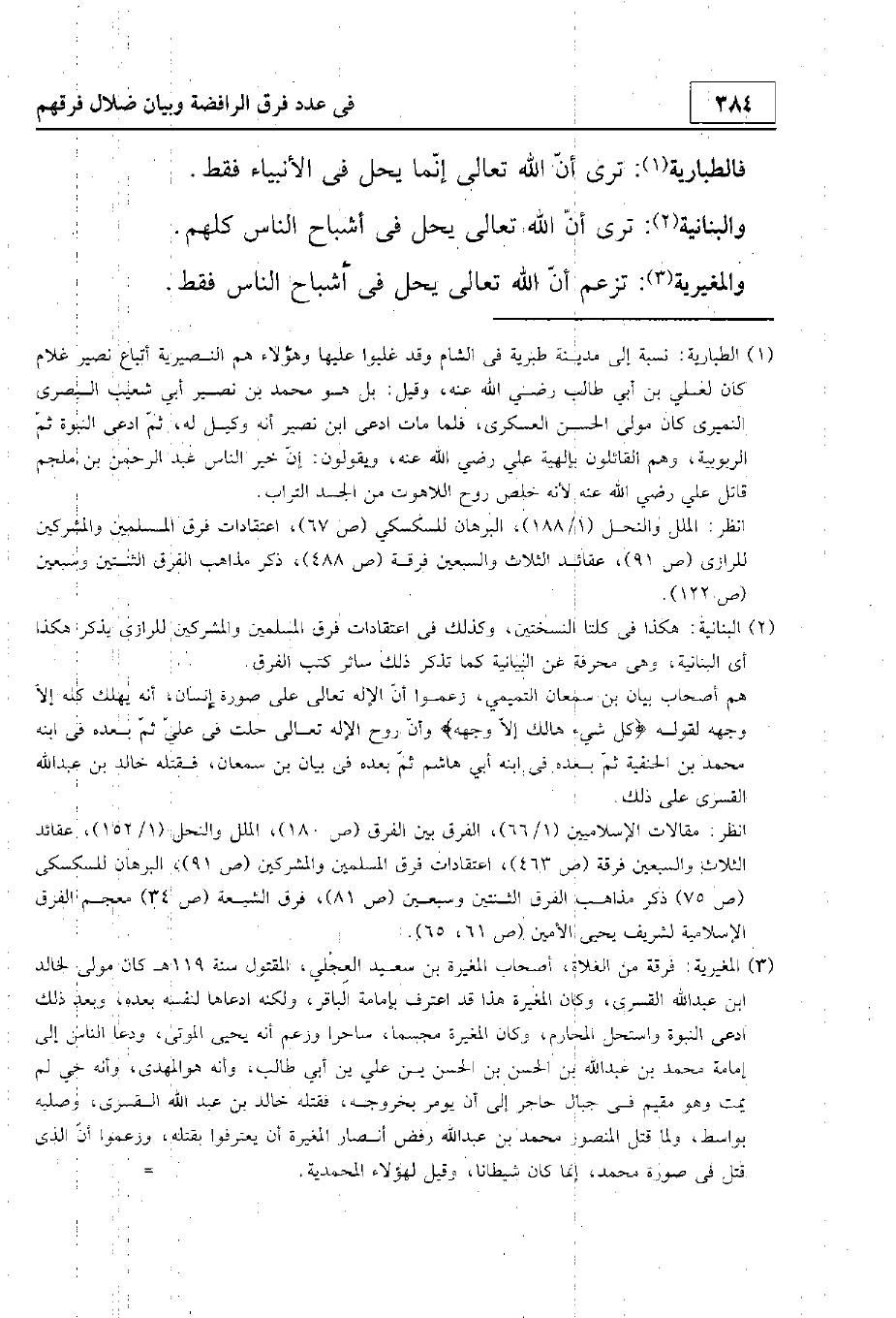 والبنانية ترى أن الله تعالى إنما يحل في أشباح الناس كلهم.