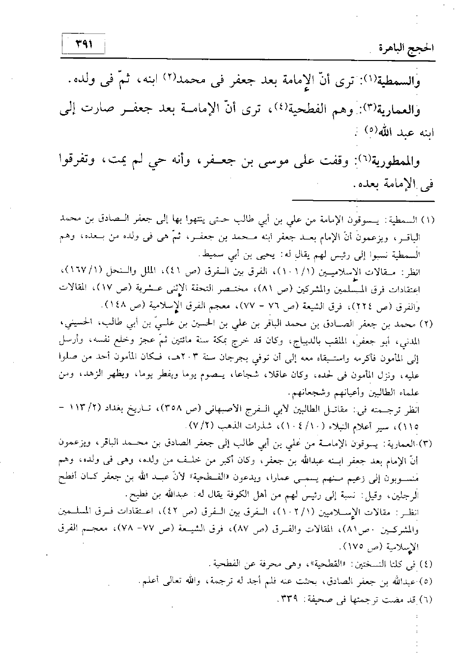 والعمارية وهم الفطحية ترى أن الإمامة بعد جعفر صارت إلى ابنه عبد الله.