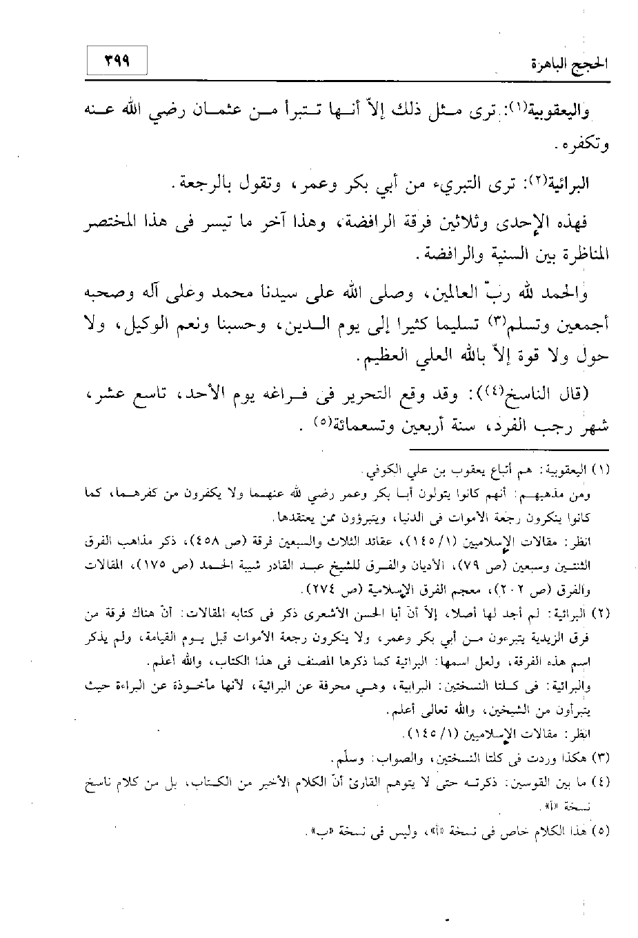 وهذا آخر ما تيسر في هذا المختصر من المناظرة بين السنة والرافضة.