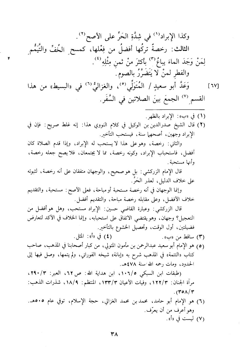 وعد ابو سعيد الْمُتَوَلِي وَالْغَزالِيّ فِي الْبَسِيط من هَذَا الْقسم الْجمع بَين الصَّلَاتَيْنِ فِي السّفر