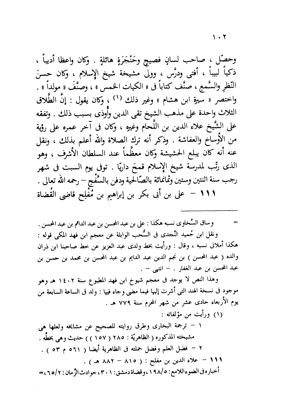 111 - علاء الدين بن مفلح: (815 - 882 هـ).
