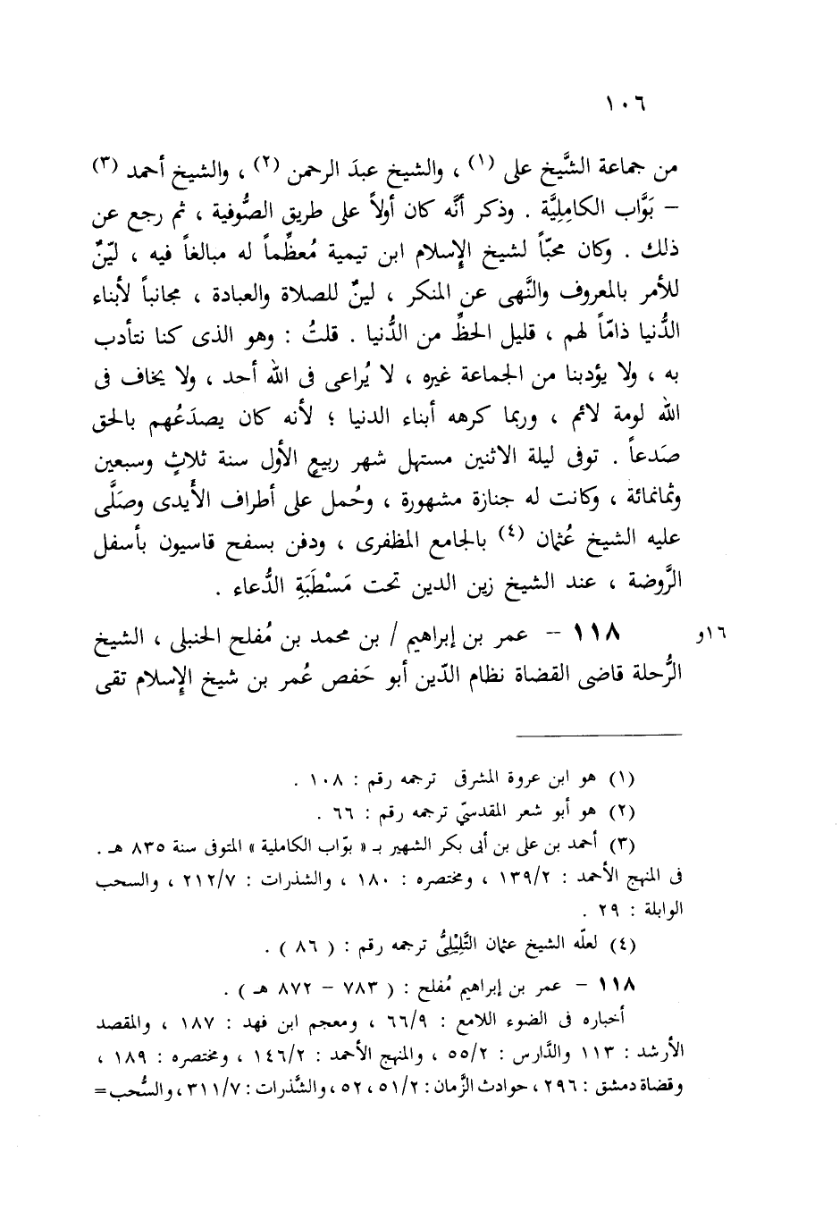 118 - عمر بن إبراهيم بن محمد بن مُفلح الحنبلى، الشيخ الرُّحلة قاضى القضاة نظام الدّين أبو حَفص عُمر بن شيخ الِإسلام تقى
