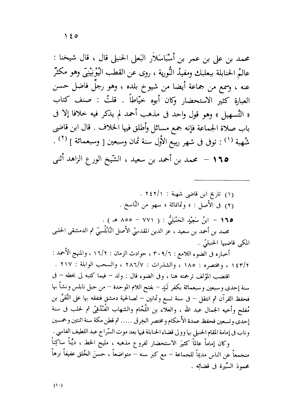 165 - ابنُ سَعِيْدٍ الحَنْبَلِىُّ: (771 - 855 هـ).